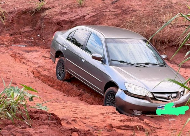 Ivinhema - Veiculo sai da pista e cai em valeta na MS-141 próximo a AABB