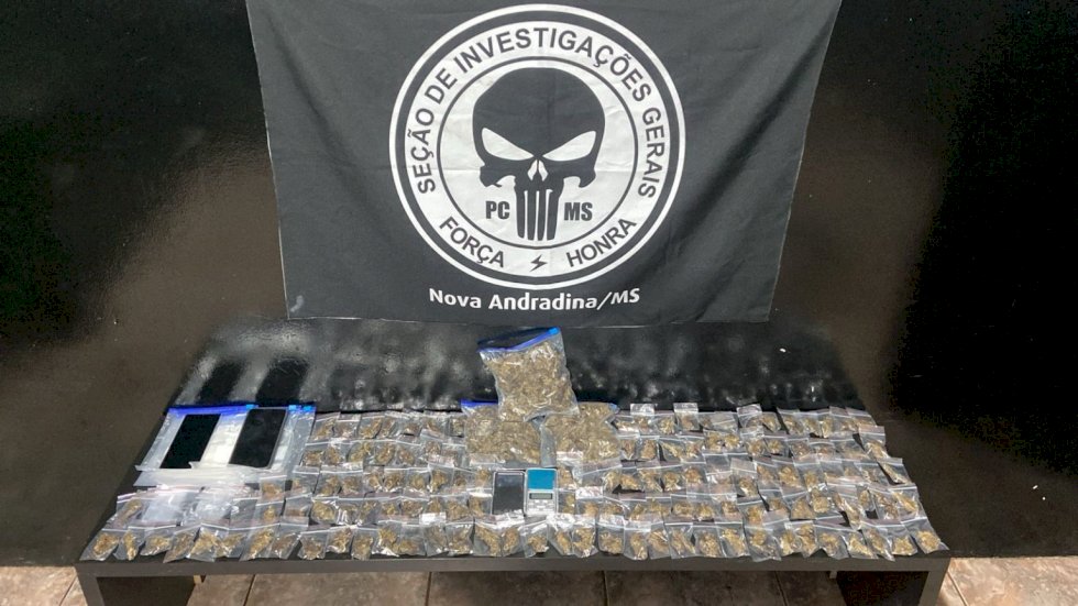 A Polícia Civil do Mato Grosso do Sul, por intermédio da Delegacia de Nova Andradina, prendeu em flagrante, nesta sexta-feira (3), dois homens de 23 e 18 anos por tráfico de drogas e associação para o tráfico. As investigações tiveram início após o Núcleo Regional de Inteligência (NRI) receber denúncias anônimas informando que uma residência no município estaria sendo utilizada como ponto de armazenamento e comercialização de entorpecentes, com intensa movimentação de usuários ao longo do dia.
