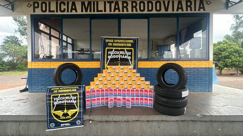 Durante fiscalização na rodovia MS-166, no km 01, equipes abordaram dois veículos transportando pneus e cigarros de origem estrangeira, oriundos do Paraguai. Os ocupantes informaram que realizavam o transporte mediante pagamento. Foram apreendidos 500 pacotes de cigarros e pneus, totalizando prejuízo de R$ 69.000,00. Conforme orientação da Polícia Federal, as mercadorias e veículos serão encaminhados à Receita Federal, sendo os envolvidos liberados após os procedimentos administrativos.