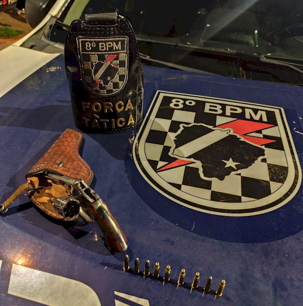 Durante a revista pessoal, os policiais localizaram um revólver calibre .22 municiado, além de munições adicionais. O armamento encontrava-se em condição de pronto uso. Com esta apreensão, a Força Tática do 8º BPM contabiliza a terceira arma de fogo retirada de circulação somente neste final de semana, reforçando a atuação ostensiva no combate à criminalidade.