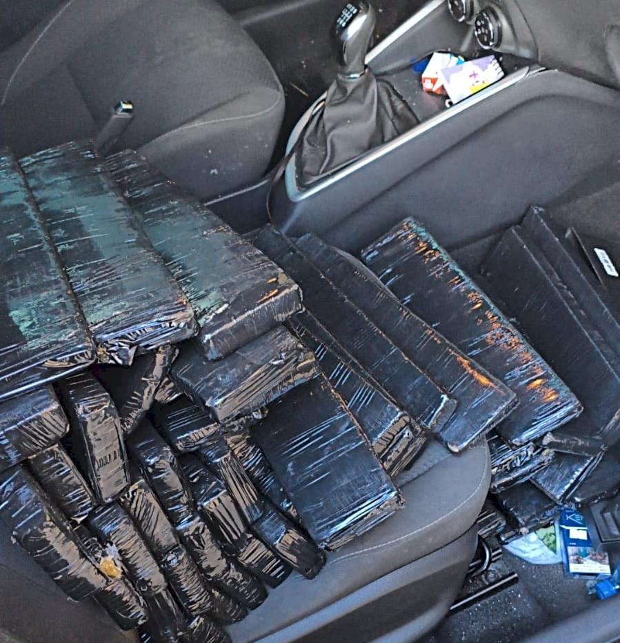 No interior do veículo, os policiais localizaram inicialmente tabletes de maconha acondicionados em uma caixa térmica. Diante da constatação, foi dada voz de prisão aos envolvidos. Na continuidade da fiscalização, foram encontrados outros tabletes da droga ocultos em compartimentos do automóvel.