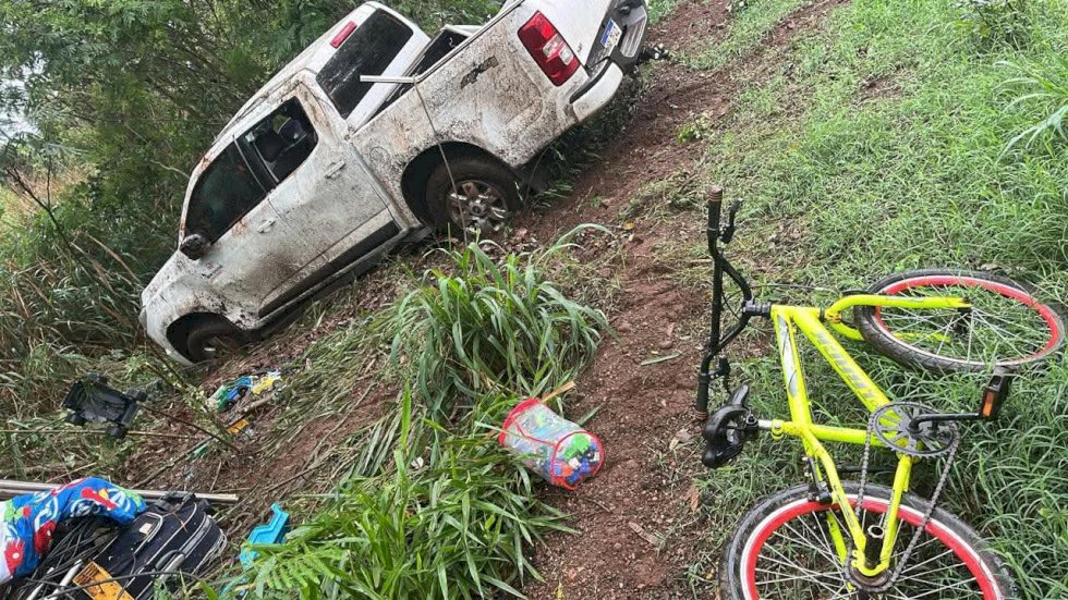 Deodápolis - Capotamento de caminhonete deixa mãe e dois filhos feridos