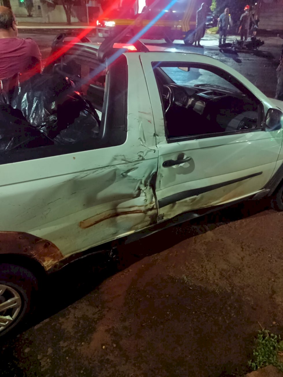Na noite desta sexta-feira(17) um grave acidente envolvendo um carro é uma moto na Av Ronaldo Padovan Branquinho bairro Centro em Ivinhema.