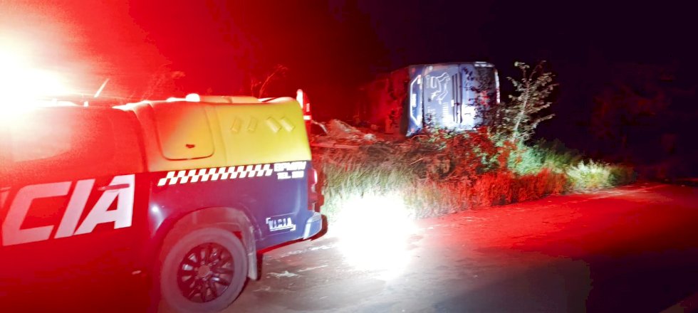 PMR atende tombamento de ônibus com vítima fatal na MS-040, em Santa Rita do Pardo