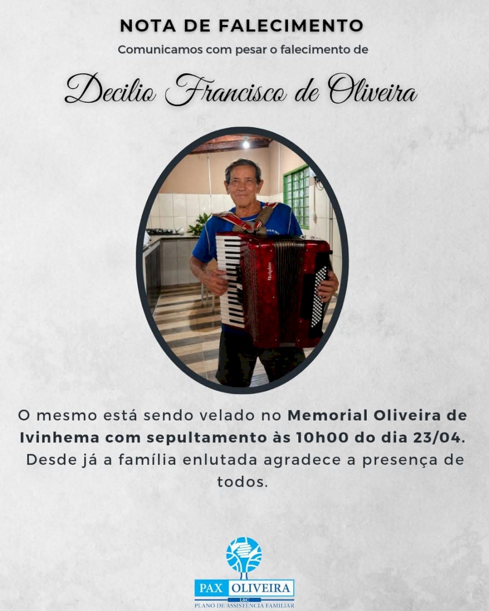 Seu corpo está sendo velado por parentes e amigos no Memorial Oliveira, em Ivinhema, e seu sepultamento será hoje dia 23/04/2026, as 10h00mim.